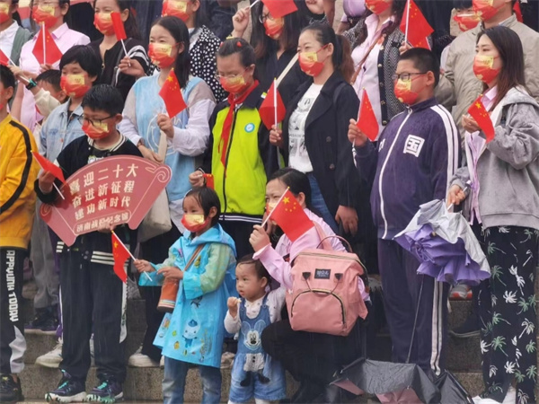 10月1日早,在持續的降雨中,濟南戰役紀念館“歡度國慶節 喜迎二十大”主題活動在英雄廣場如期舉行,200多名市民群眾冒雨趕來,目送五星紅旗冉冉升起,聆聽紅色故事激蕩心中豪情,一同祝福偉大祖國繁榮昌盛,國泰民安!